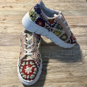 Free People Catch Me If You Can Crochet Platform Sneaker Multicolor EU 40 NWOT