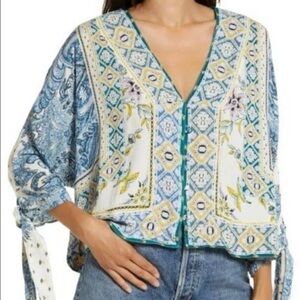 Free People Catch Me If You Can Floral Boho Patchwork Top Size XL