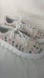Trendy sneakers with colorful embellishments. Cream base with pink and green accents. Perfect for casual wear.
