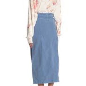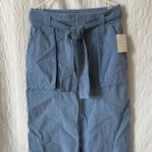A casual midi skirt features linen blend construction and a self-tie waist.- Zip fly with dual hook-and-bar closure - 2 front patch pockets - Self-tie waist - Front vent - Linen blend construction - Solid - Unlined - Imported -Color Blueberry pie.