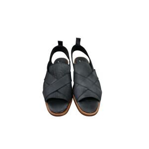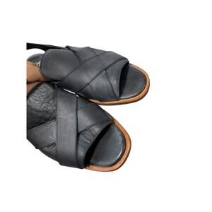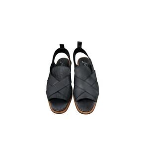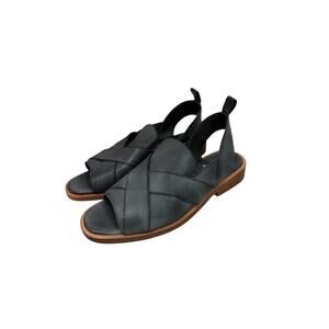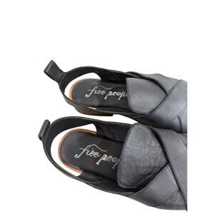 Free People Catherine Ankle Strap Sandal Black Leather Minimalist Boho Womens 38
