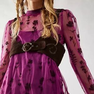 Free People - Cecelia Sheer Mini Dress, Fuchsia, Size S