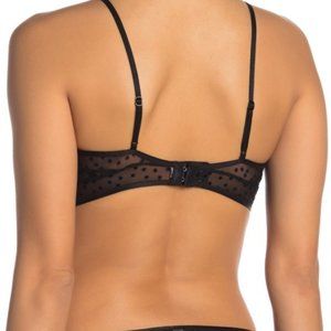 Free People Celeste Bralette, a lacy bralette with adjustable spaghetti straps and front O-ring detail. Plunging neck, center O-ring detail, back hook-and-eye closure, adjustable spaghetti straps, sheer mesh construction, unlined. A beautiful item to add to your intimates collection. Size Medium. OB874154 0010.
