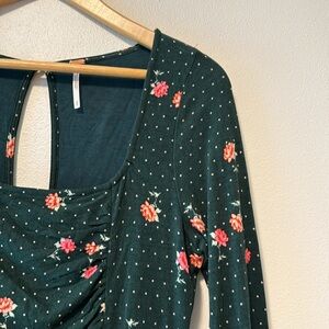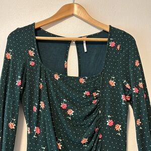 Free People Celia Floral Dress Womens Small Microfloral Square Neck Keyhole Back