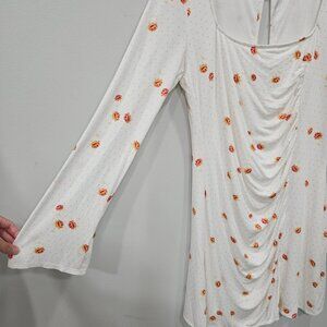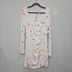 Free People Celia Long Sleeve Square Neckline Ivory Floral Mini Dress New Large