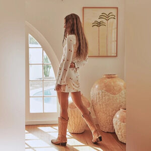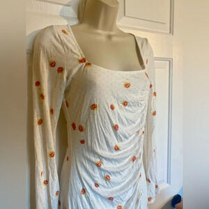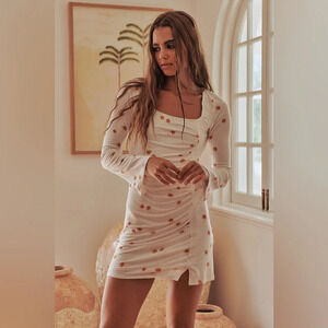Free People - Celia Mini Dress in Ivory Combo XS Rose Floral Long Sleeve Dress