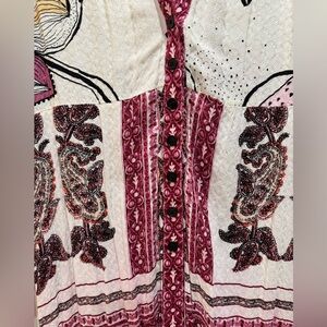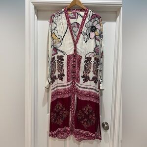 Free People C'est Moi Mixed Print Maxi Top Womens Sz XS Button Up Cardigan Dress