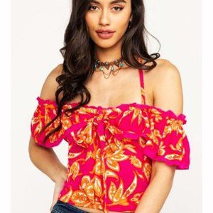 Brand new without tags Free People "Cha Cha Off-The-Shoulder Top" in Raspberry Sorbet, size XS. Sold out everywhere! Nordstrom description: "A detailed paisley print adds color and dimension to a shoulder-baring top with a flouncy popover neckline that can be tied into a bow. Straight neck. Short cold-shoulder sleeves. 95% rayon, 5% spandex."