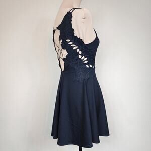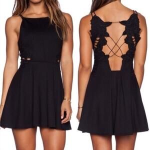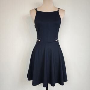 A little black dress that will suit any occasion! It's strappy and stretchy with rayon, polyester, and spandex. It has a fit-and-flare style to make you feel sexy.