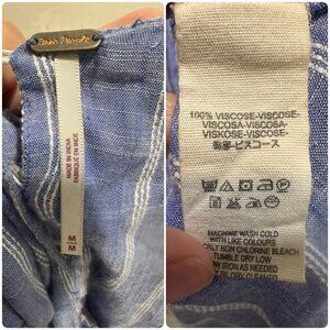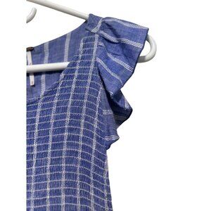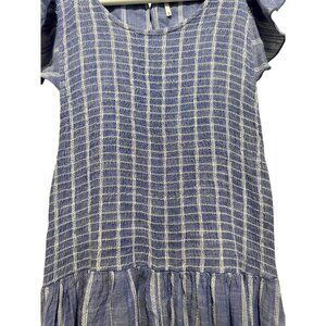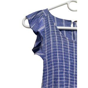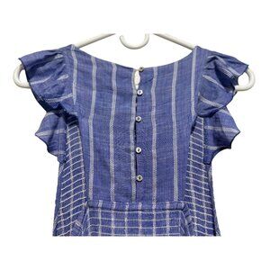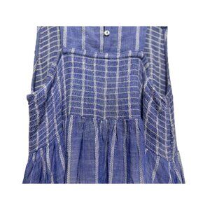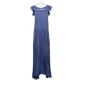 Free People Chambray Striped Dress Medium Pastel Blue Smocked Waist Ruffle Boho