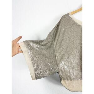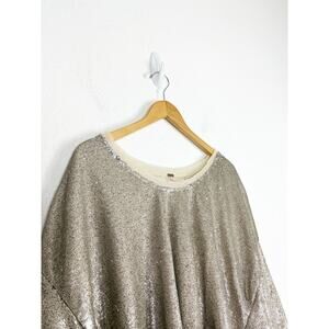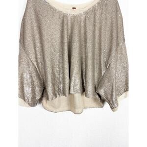 $128 Free People Champagne Dreams Tee Small Neutral Gold Sequin Oversized Cropped