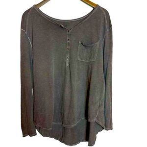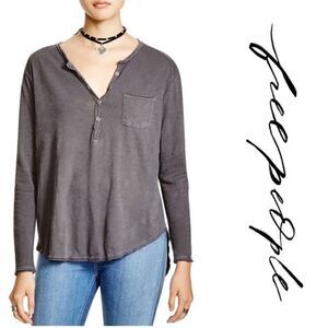 Free People Charcoal Grey Frontier Slub Long Sleeve Henley Top Size S