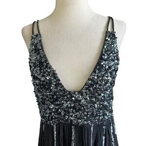 Free People Charcoal Sequins V-neck Mini Dress Women's Size Medium | 74-31-3