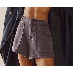 Chic charcoal shorts by Free People. Features front pockets and belt loops. Ideal for everyday style.