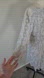 EUC, no tears, holes, runs, or pilling. This dress is a stunner with lace sleeves that run over the shoulders, and a high low hem, and smocked neckline and waist. Fully lined, 100% polyester with rayon lining. Midi length. Size XS, but can easily be worn by a small. For reference my mannequin is a size 4, and it easily fits.