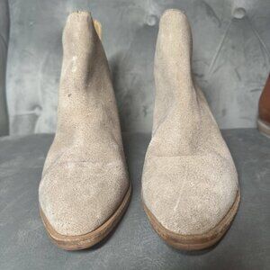 Free People Charm Double V Pointed Toe Camel Suede Leather Ankle Boot Size 38.5
