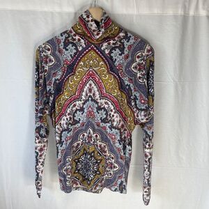 Free People Chase Me Paisley Jersey Knit Mock Neck Top Sz XS