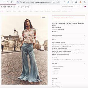 Free People Chase The Sun Extreme Wide Leg Jeans in "Flutter Light Blue" in size 27. Seriously slouchy from the We The Free collection, these jeans are featured in a soft fabrication with exaggerated wide legs. Low-rise; wide, full-length legs. Zip-fly and button closure, pockets for hands, raw hemlines, yoke seaming for added dimension. This ultra-slouchy pair can be worn with all your favorite tees and tanks for effortlessly easy outfitting. Made to be worn low on the hips. Designed to fit comfortably with a stretch fabrication. Excellent condition, but have been hemmed/cut to an inseam of 31-1/2 inches. Please see pictures for all for details, fabric content, condition & measurements. These are sold out online. My prices reflect the rarity of my items and what I paid for them. Reasonable offers welcome.