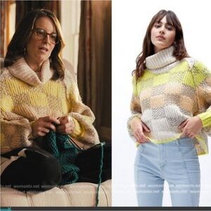 Free People Check Me Out Checkered Turtleneck Sweater Sz S
