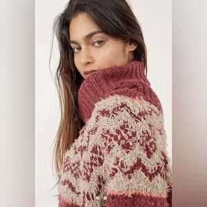 Free People Check Me Out Distressed Pullover Sweater In Burgundy Combo Size S