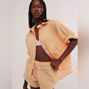 Keep it breezy in this airy set from Intimately, featuring an oversized short-sleeve button down and laid-back boxer shorts, all in a sweet gingham print for the perfect matchy moment.