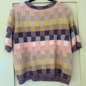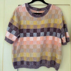 Free People Checkered Chenille Short Sleeve Sweater