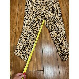 Very good condition Free People Cheetah Pants. Gauze like material; 100% rayon. Crop Capri Style. Zippers at bottom for detail. Elastic waistband. Size large.