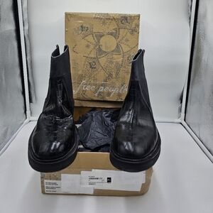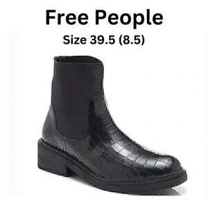 Free People Chelsea Boots Croc Embossed Leather Black Sz 39.5 (8.5)
