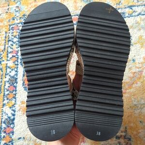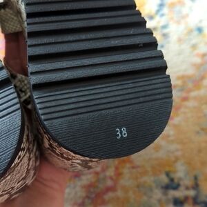 Free People Chelsea Embossed Snake Print Strappy Platform Sandals Beige Black 38