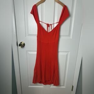 Features: Soft fabrication, sweetheart neckline, cap-inspired sleeves, pleated detail throughout, open-back detail with self-tying closure and adjustable straps, lettuce-edge hem at bottom