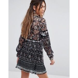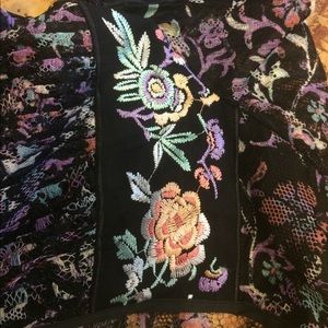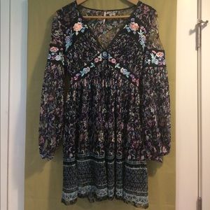 Gorgeous, intricate embroidered Free People mini dress. Long sleeves. Llow v-neck. Embroidered flowers and lace. An invisible zipper on the right under the arm. Lightly used but like new!✨ There was a little rip near the zipper on the side, but I sewed it up and it's barely noticeable.