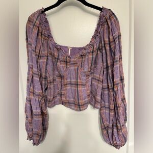 Free People Cherry Bomb cropped purple madras corset top size small petite SP