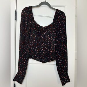 Free People Cherry Print Long Sleeve Ruched Front Top- Medium