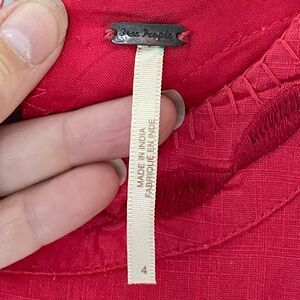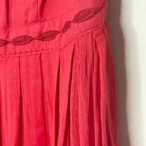 Free People Cherry Red Embroidered Pleated Sleeveless Dress Size 4