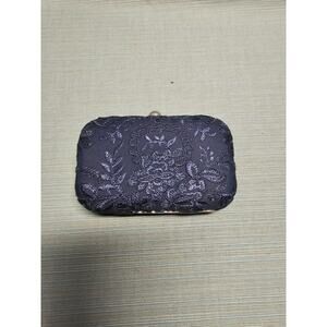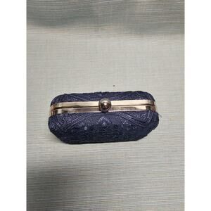 Free People Chi Chi London Navy Blue Embroidered Clutch Purse Metal NWOT