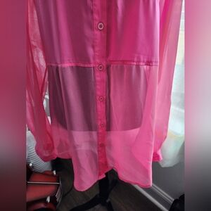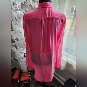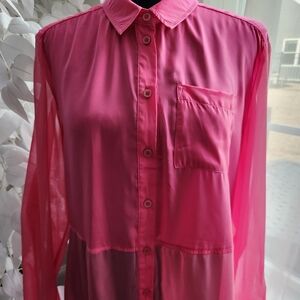Free People Sheer Chiffon Hot Pink Button-Up Long Sleeve Shirt.