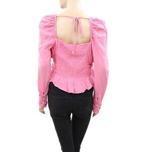 Free People Chloe Cropped Top Solid Ruffle Puffed Sleeves Smocked L New 272714
