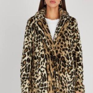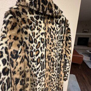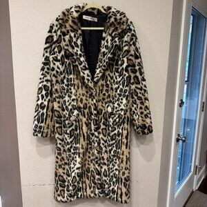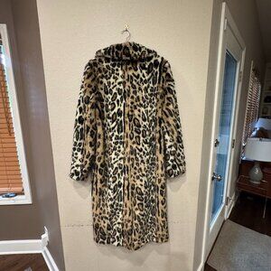 Free People Chloe Leopard Faux-Fur Duster Coat, Size Large