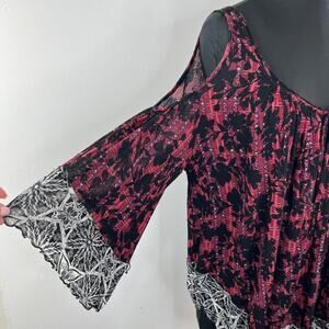 Free People Chloe Tee Purple Cold Shoulder Blouse Scoop Neck Flowy Long Sleeve L