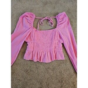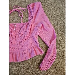 Free People Chloe Top Aurora Pink SMALL Sweetheart Neckline Smocked Back Tie $98