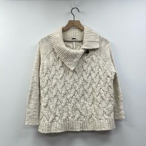 Free People Chunky Cable Knit Oversized Cowl Neck Pullover Sweater Cream Small