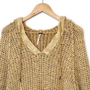 Free People Chunky Knit Crochet Hooded Long Tunic Pullover Sweater Size M