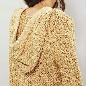 Free People Chunky Knit Crochet Hoodie Long Tunic Pullover Sweater Size M