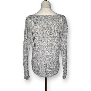 Free People Chunky Knit Open Stitch Sweater - Gray/Black/White Marl
