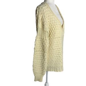 Free People Chunky Knit Oversized Sweater S Cream Wool Blend Scoop Neck Pullover