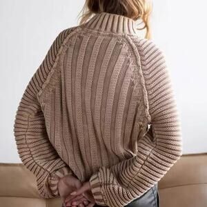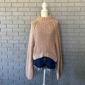 Free People Chunky Knit Sweetheart Sweater Sz Small Oversized Cropped Cozy Boho