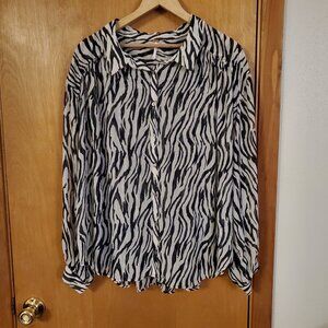 Free People Ciara Zebra Printed Button Down Blouse Sheer Black/White Size XL