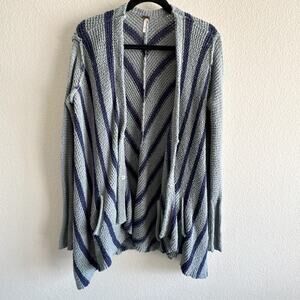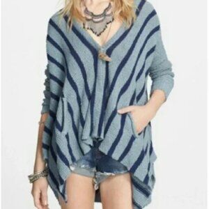 Free People Circle Back Cardigan Blue XS Striped Draped Knit Sweater