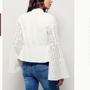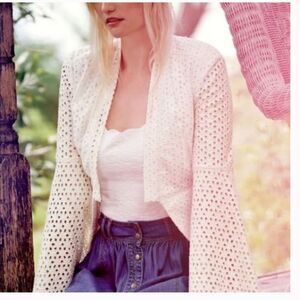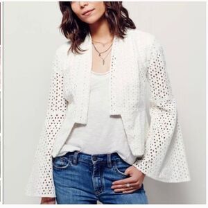 Free People Circle Sleeve Eyelet Jacket Blazer ivory white sz S