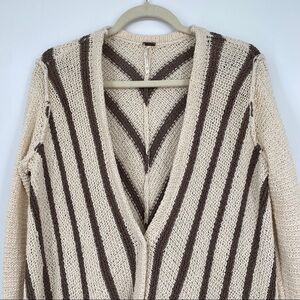 Free People Circle back Oversized Striped Asymmetrical Knit Cardigan Sweater